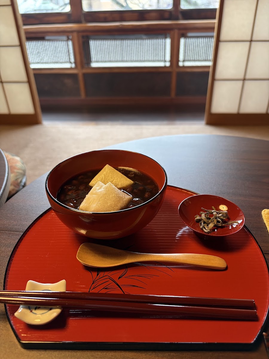 The menu highlights simple yet inviting options such as carefully brewed coffee, refreshing ice cream, and a subtly sweet ぜんざい (red bean dish) alongside amazake—a fermented rice drink that tends to appeal to visitors interested in local flavors and gentle sweetness over strong alcohol content. The cafe feels well suited for those who want to enjoy a quiet moment, possibly in the afternoon when the soft light fills the upstairs seating with views over the water and the charming streets below.
